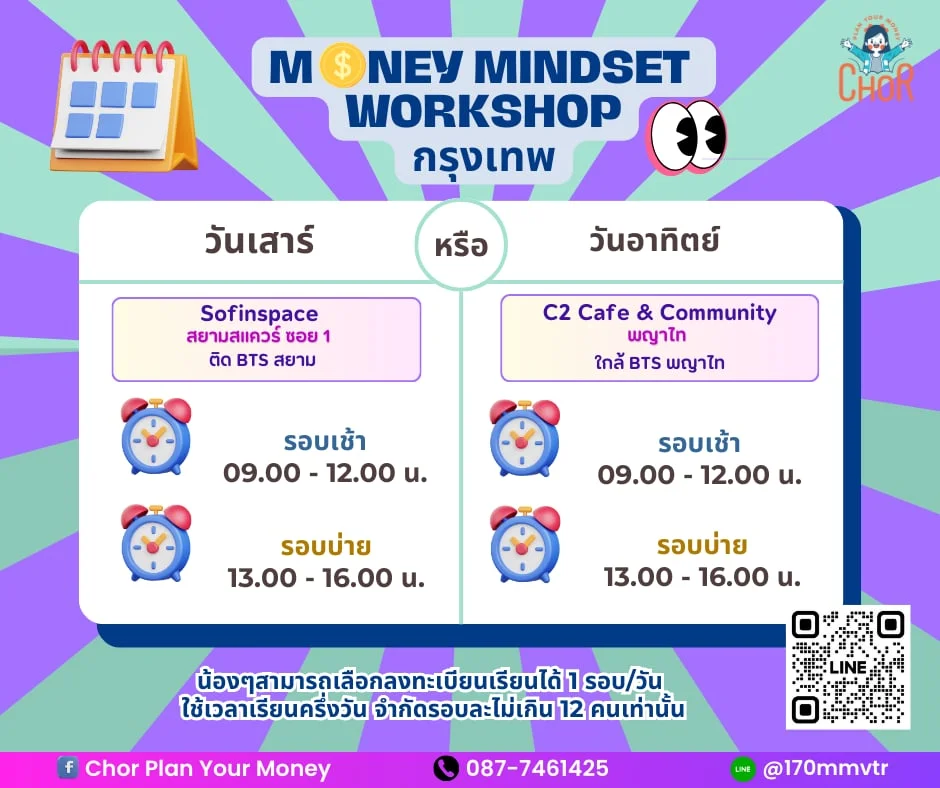 คุณพ่อคุณแม่ในกรุงเทพฯ ห้ามพลาด! โอกาสพิเศษมาถึงแล้ว ครูช่อพาน้องๆ อายุ 9 – 15 ปี มาสนุกกับการเรียนรู้เรื่องเงินๆ ทองๆ อย่างสร้างสรรค์ ใกล้บ้านคุณ! 🚀 Money Mindset Workshop ออกแบบมาเพื่อปลูกฝังทัศนคติทางการเงินที่ถูกต้องให้กับลูกน้อย ผ่านการเรียนรู้ที่ “สนุก” และ “เข้าใจง่าย” ด้วยบอร์ดเกมและกิจกรรมที่พัฒนาขึ้นเพื่อการเรียนรู้ของเด็กๆ โดยเฉพาะ